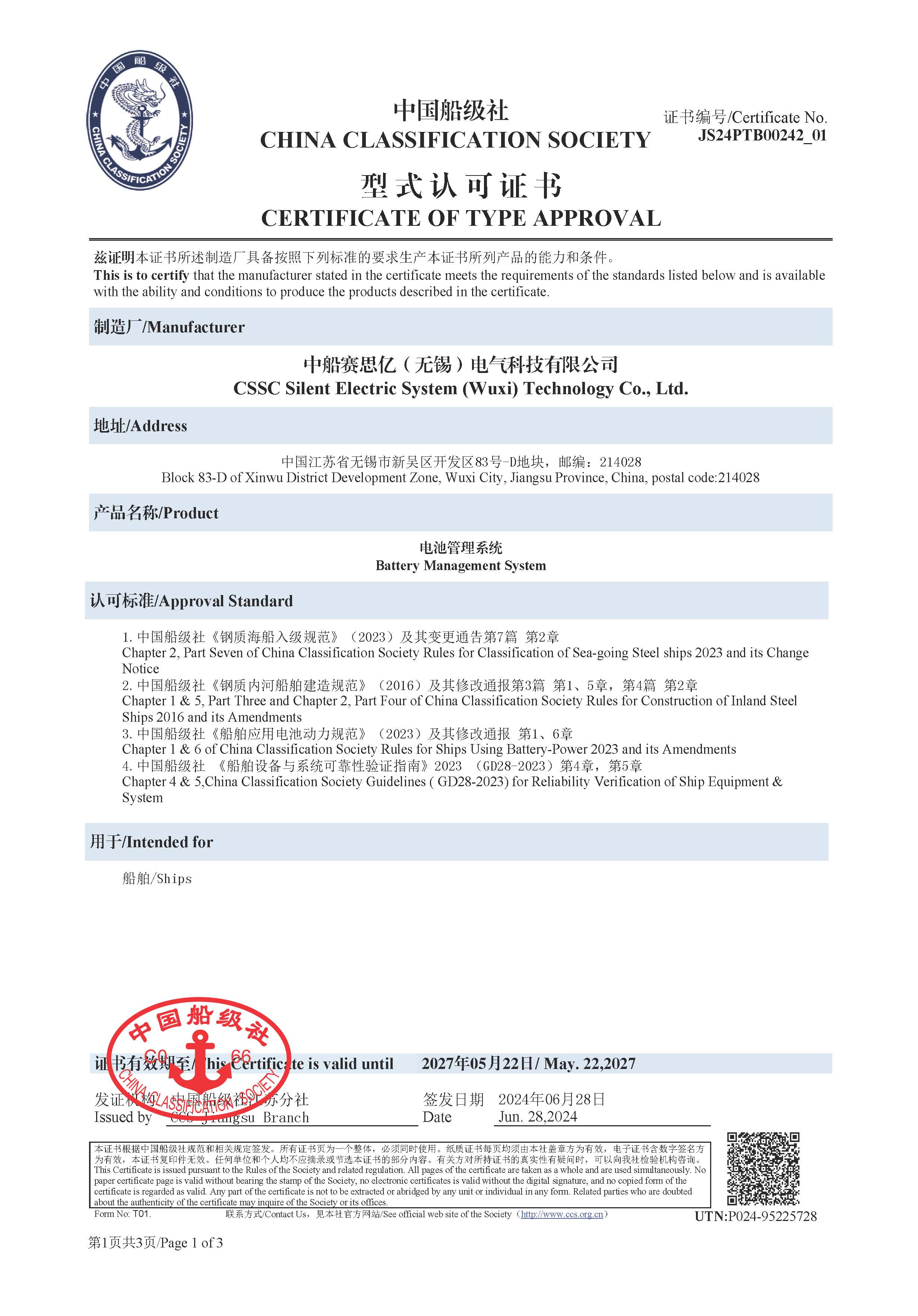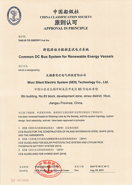 直流組網技術獲得中國船級社新能源動力原則認可證書和中國船級社電力推進系統設計認可證明文件。