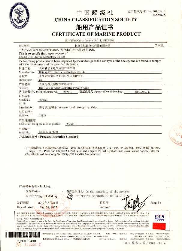 此次認(rèn)證的完成不僅標(biāo)志著山西汾西重工有限責(zé)任公司、北京賽思億電氣科技有限公司的直流組網(wǎng)產(chǎn)品已經(jīng)在國際上作為正式產(chǎn)品正式具備裝船使用的全部條件,更標(biāo)志著我們先于諸多國際巨頭公司率先在中國推動了該項技術(shù)的應(yīng)用與發(fā)展。