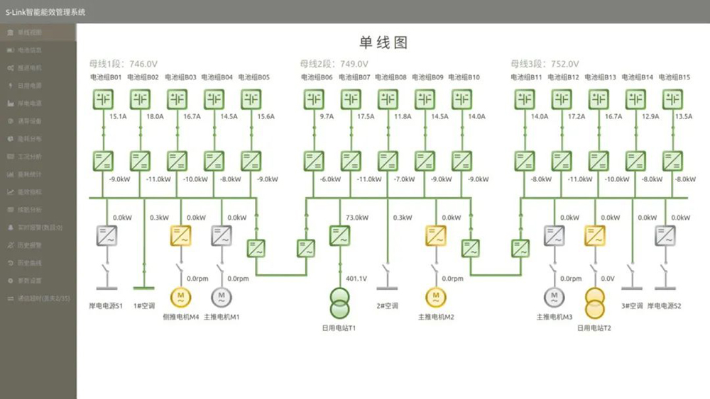 基于“長江三峽1”號純電動船的特點,賽思億科研團隊與中國船級社多次深入探討《智能船舶規范》對純電池船的匹配要點。經過反復研究,賽思億科研團隊開發了S-Link系統,針對純電池船設計出了特殊的能效指標計算模型、續航里程估算模型、定制化能效類報表等多種突破于先前的新型計算模式。