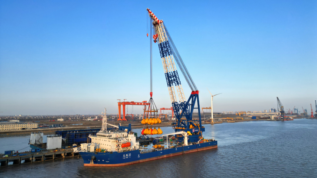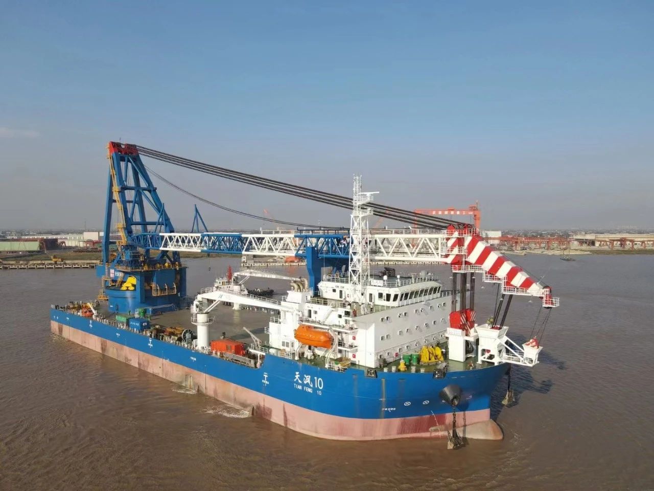 “天沨10”主要用于海上風電單樁基礎、導管架、平臺模塊、升壓站組件以及大型海上鋼構等吊裝工作。在固定尾吊狀態下,“天沨10”設備的最大起重量可達3000噸,最大起吊高度達110米,設備配備了起升、變幅及360°連續全回轉等操作功能,能夠全方位滿足海上風電等工程施工的作業需求。