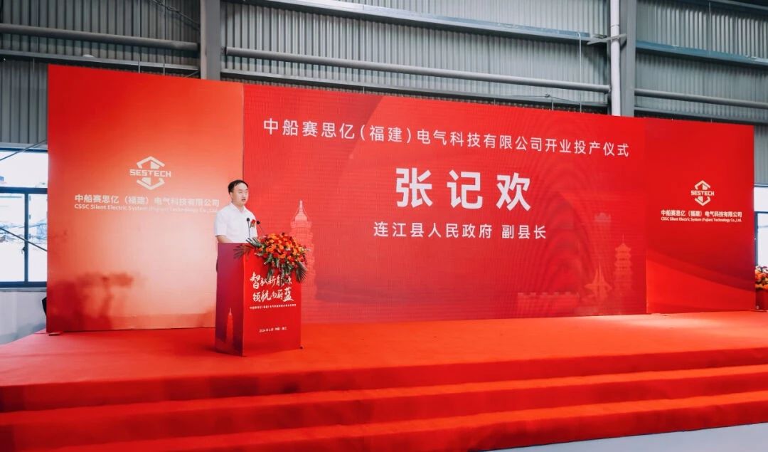 連江縣人民政府副縣長(zhǎng)張記歡發(fā)表講話(huà),他表示,中船賽思億(福建)電氣科技有限公司的落地投產(chǎn),是對(duì)連江發(fā)展新能源船舶產(chǎn)業(yè)的一次重要推動(dòng),是連江加快形成新質(zhì)生產(chǎn)力的一個(gè)縮影,并表達(dá)了對(duì)福建賽思億能夠在連江扎根、成長(zhǎng),并在未來(lái)取得更加輝煌成就的期待。