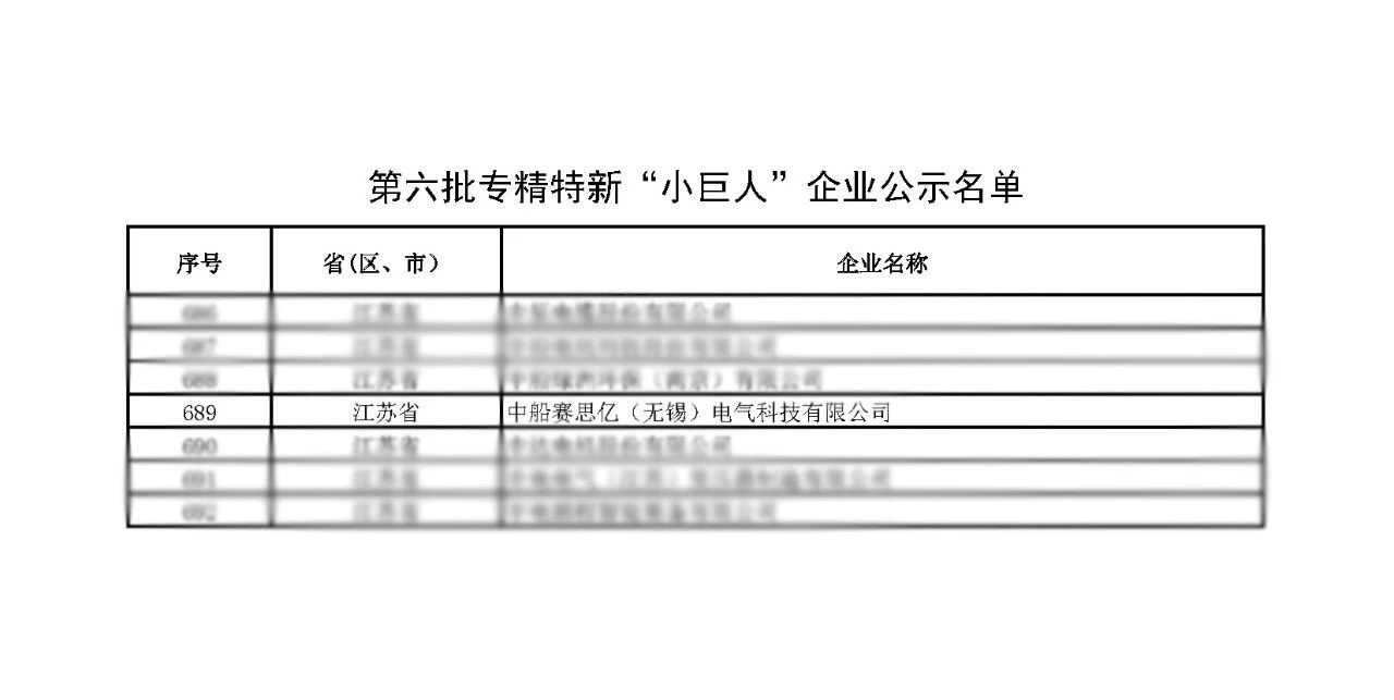 近日,江蘇省工信廳發布了第六批國家專精特新“小巨人”企業名單,中船賽思億(無錫)電氣科技有限公司在列。專精特新“小巨人”企業是“專精特新”中小企業中的佼佼者,是專注于細分市場、創新能力強、市場占有率高、掌握關鍵核心技術、質量效益優的排頭兵企業。