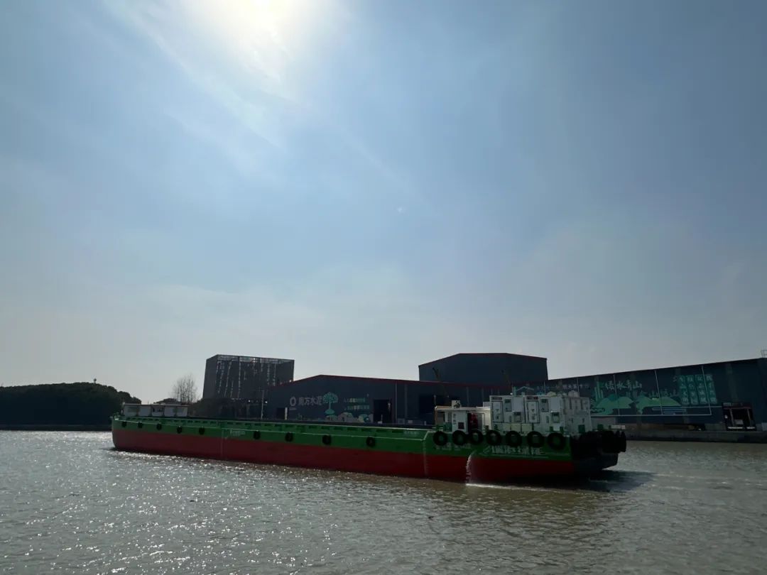 浙江省首批內河64TEU箱式電源動力集裝箱船第三艘——“吳興瑞港003”迎來交付,系列船舶由浙江瑞港綠能航運有限公司出資,嘉興市浙北造船有限公司建造,賽思億為系列船舶的每艘船舶配置2個箱式電源,每個箱式電源容量為1959kWh,經過集中式的直流母線變頻電控設備進行并網,驅動2臺240kW的主推電機。箱式電源具備可充可換的特點,符合船東方環(huán)保和自然的船舶設計理念。該船三電系統(tǒng)的箱式電源系統(tǒng)和電控系統(tǒng)全部搭載賽思億自主知識產權產品。
