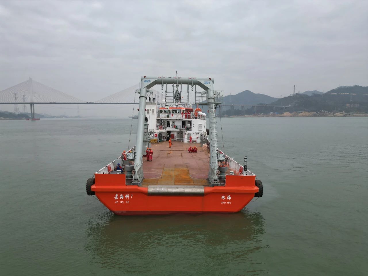 由珠海嘉海海洋科技有限公司投資建設、廣州打撈局江門有限公司承建、浙江欣海船舶設計院股份有限公司設計的“嘉???”號2000噸級科學調查船近期順利交付。“嘉???”號主要用于近海海洋地質勘測并兼顧遠海海洋科學調查,是一艘具有海洋地質勘查及研究功能的綜合調查船。該船從開工到建成,建設各方全力配合,耗時12個月,順利交付。