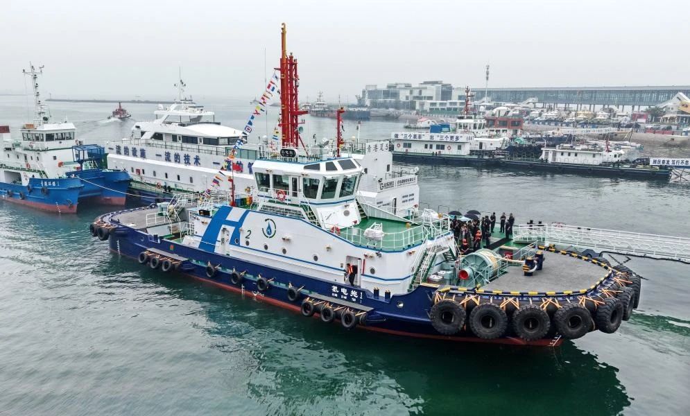 6月26日,馬力最大、鋰電池容量最大的全國首艘氫電拖輪“氫電拖1”輪在山東港口青島港正式入列。“氫電拖1”輪創新采用全球首創的 “氫燃料電池+液冷鋰電池”混合動力模式、北斗集成系統、全自動智能岸基充電等技術,填補了國內多項空白。