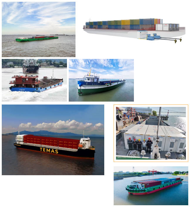由浙江海港內河航運有限公司出資、嘉興市金航船舶設計有限公司設計、嘉興市浙北造船有限公司建造的64標箱純電動內河集裝箱船三電系統項目正式啟動,進入緊張的設計生產階段。三電系統搭載的是中船賽思億S-Renewable新能源動力系統總成,電池系統采用大型“充電寶”——2個集裝箱式電池,可充可換,是浙江省海港集團首艘以電池為全動力源的內河船舶。