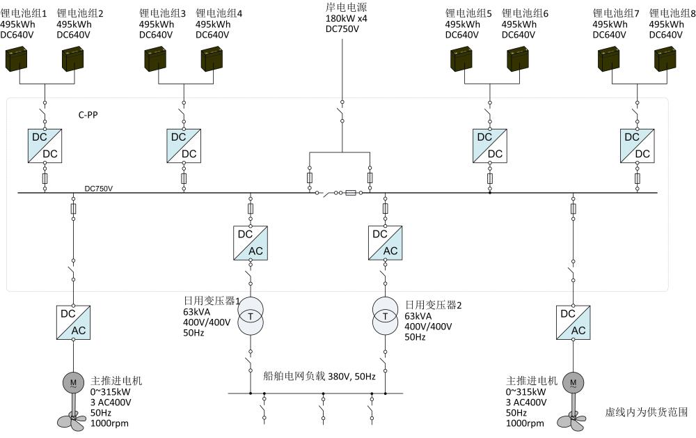 賽思億為3000噸散貨船提供的純電池動力直流組網電力推進系統主要包括:直流母線變頻電控設備等,該系統采用鋰電池綠色能源,可實現“零排放”綠色航運。